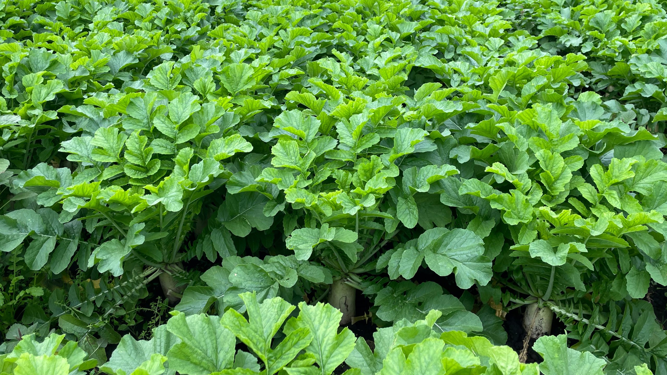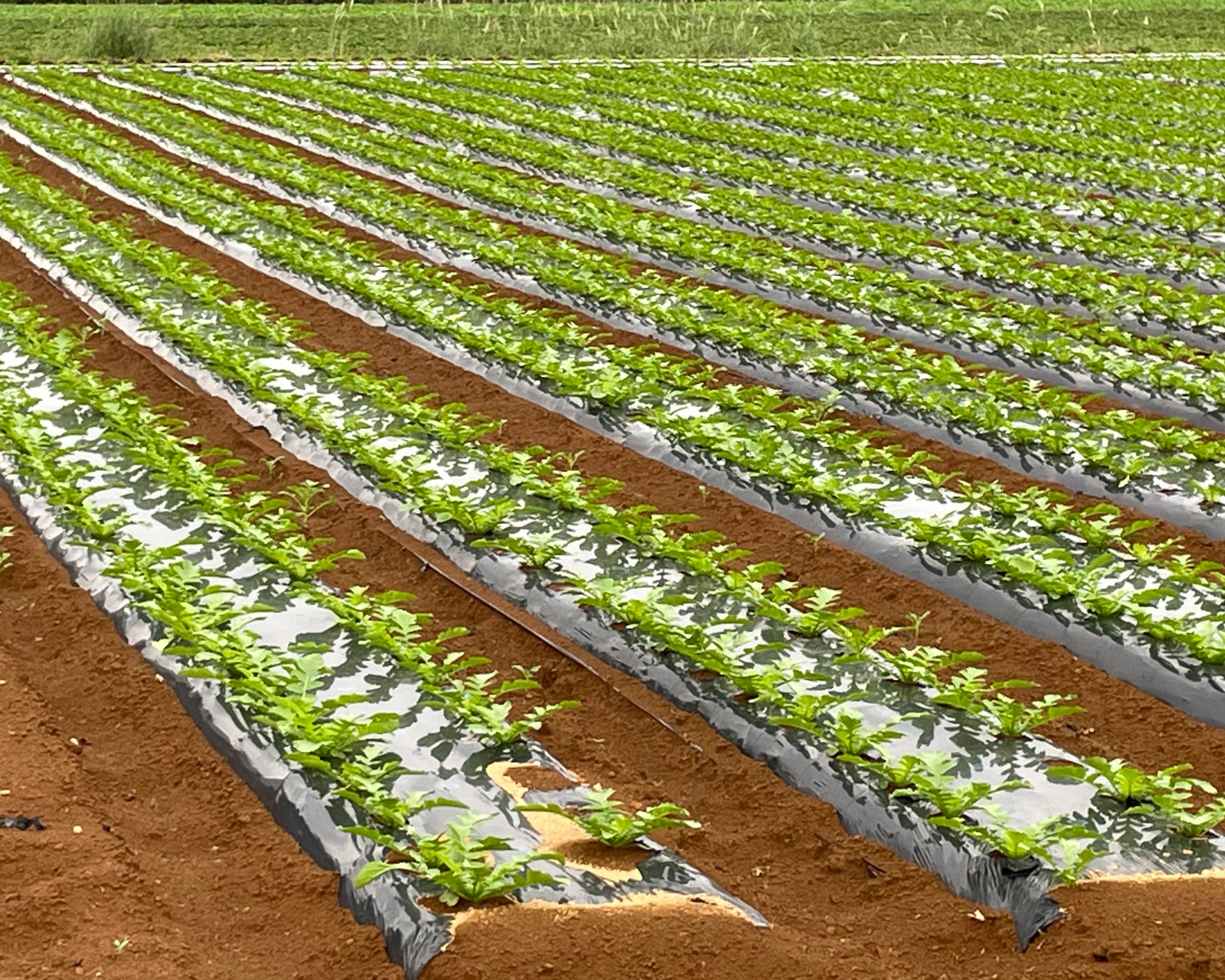 本葉が出た後は、こまめな管理が重要です。気温が高いと枯れてしまうので、こまめに潅水を行います。また、気温が高いと害虫が多く発生しますが、農薬を極力使用しないよう、必要最低限の防除を心掛けています。