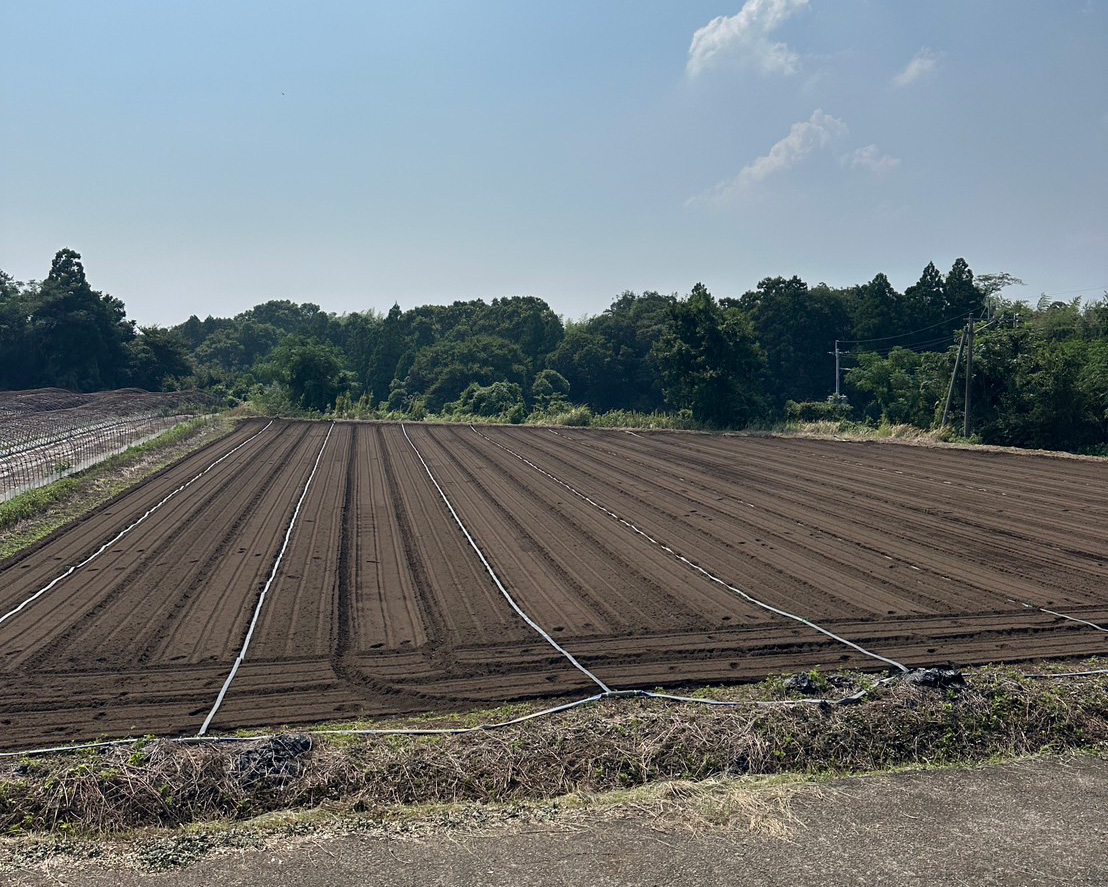 播種後、蒔いた種が確実に芽が出るように、圃場に水を効率的に供給するためのチューブを敷設して、徹底的に潅水を行います。こまめに圃場の状況を見て、必要に応じて潅水をしていきます。