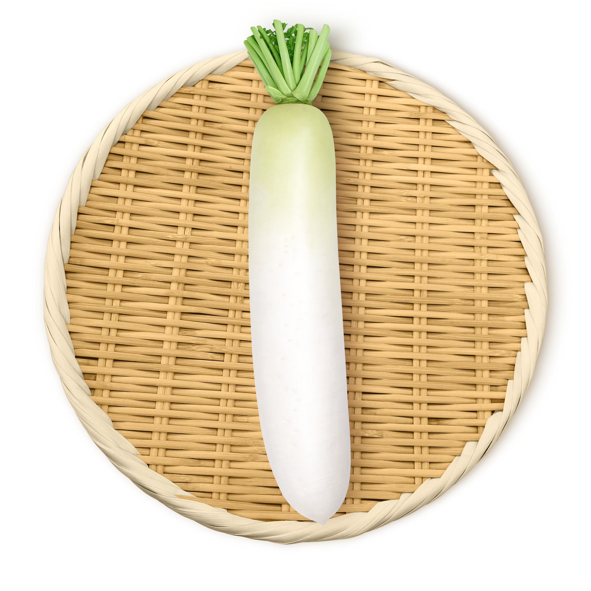 大根は、葉に近い上の部分が甘みが強く、先端の下の部分には辛みがあります。上の部分はサラダ、大根おろし、漬け物に。中央部は、ほどよい硬さと甘みがあるので煮物におすすめ。下の部分は、やや硬めで辛味があるので、炒め物や味噌汁に。