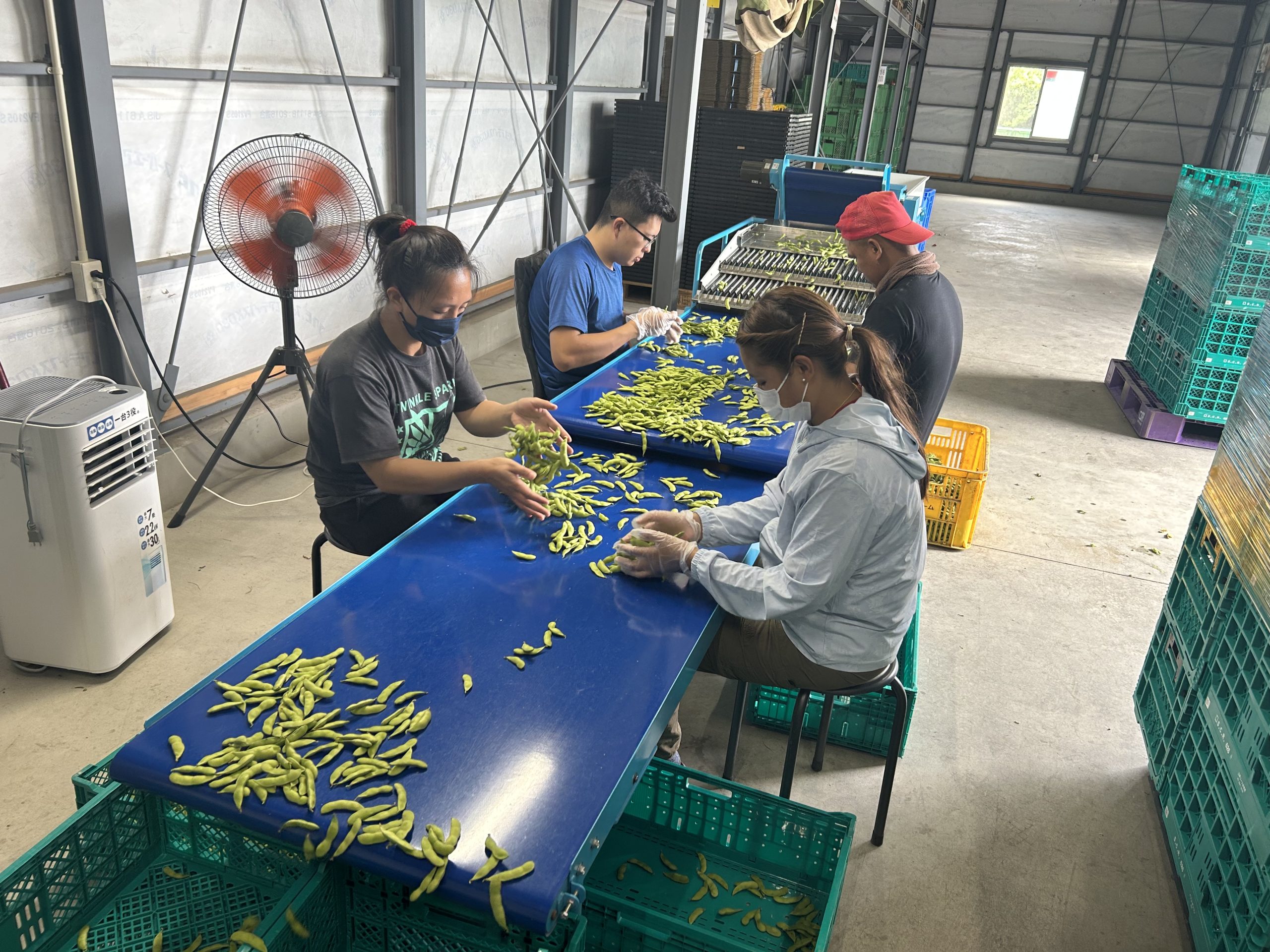 枝豆は、収穫から時間が経つごとに糖分やうまみ成分が減ってしまうため、収穫後の作業をいかに素早く行うかが重要になります。枝と豆を分ける脱莢(だっきょう)という作業を専用の機械で行うことで収穫後の時間を短くするように努めています。