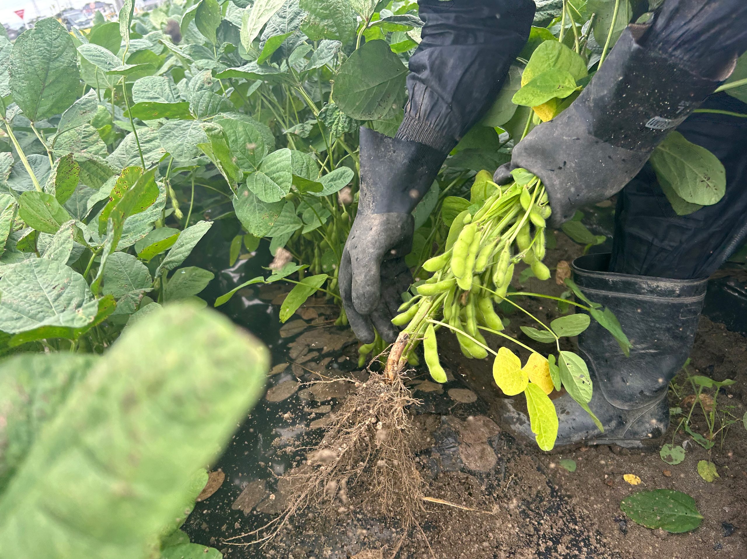枝豆は、収穫が早すぎると未成熟、遅すぎると大豆のように硬くなってしまいます。彩ファームでは、美味しく食べられる最適な収穫のタイミングを見極め、機械ではなく手作業で収穫を行っています。