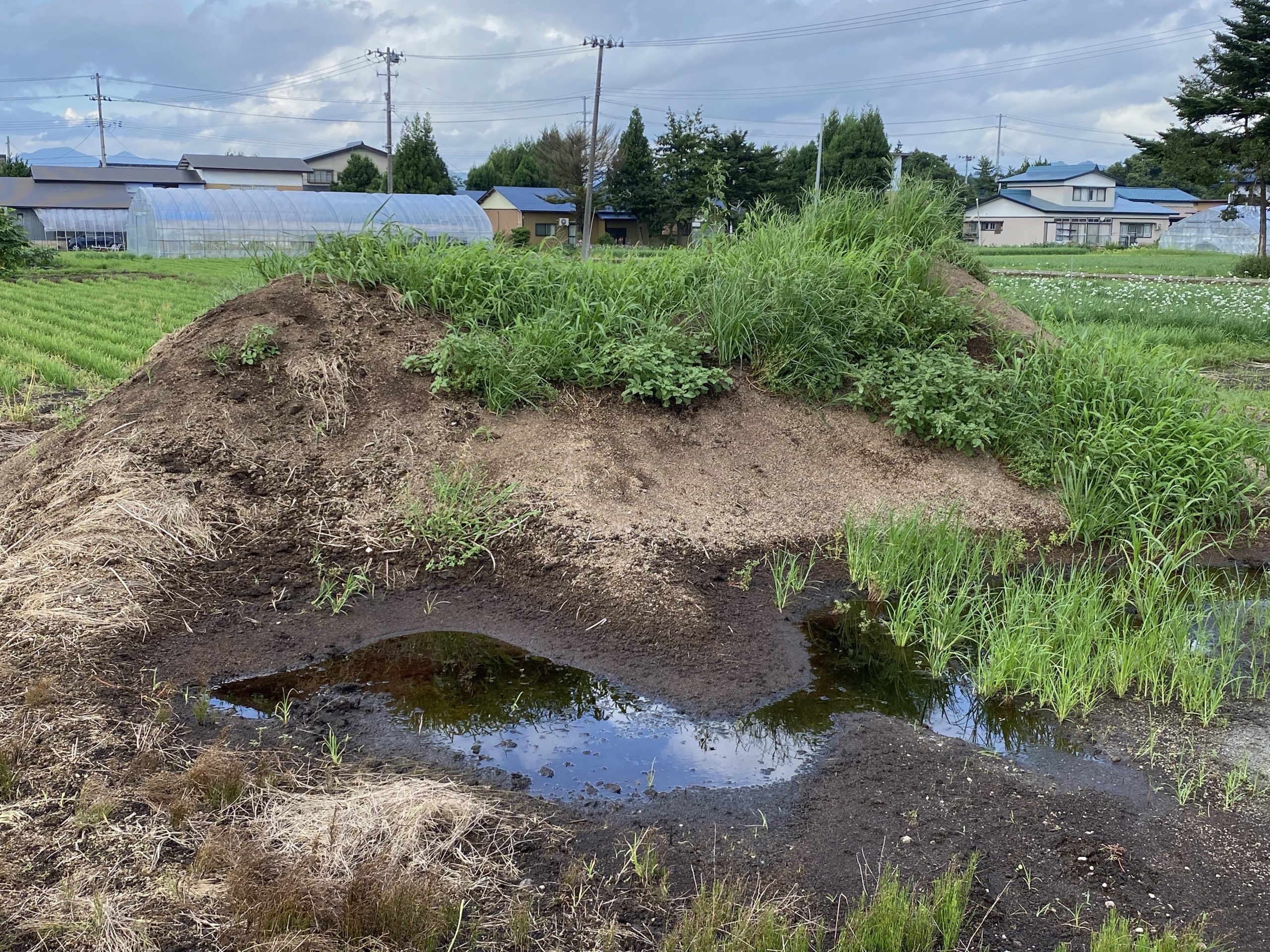もみ殻を利用して作った、自家製もみ殻堆肥を使用して土づくりを行っています。自家製もみ殻堆肥は、「土がカチカチ」「水はけが悪い」といった畑の土づくりに効果的で、特に畑の排水を良くする目的で利用しています。