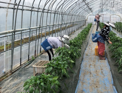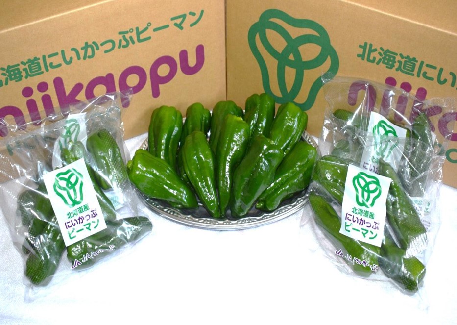 新冠町農協ピーマン生産部会のすべての生産者がエコファーマーの認定を受け、環境と人にやさしい農業を実践しています。品種は、果実が大きく育ち、果肉が薄く苦味が少ないのが特徴の「みおぎ」を栽培しています。