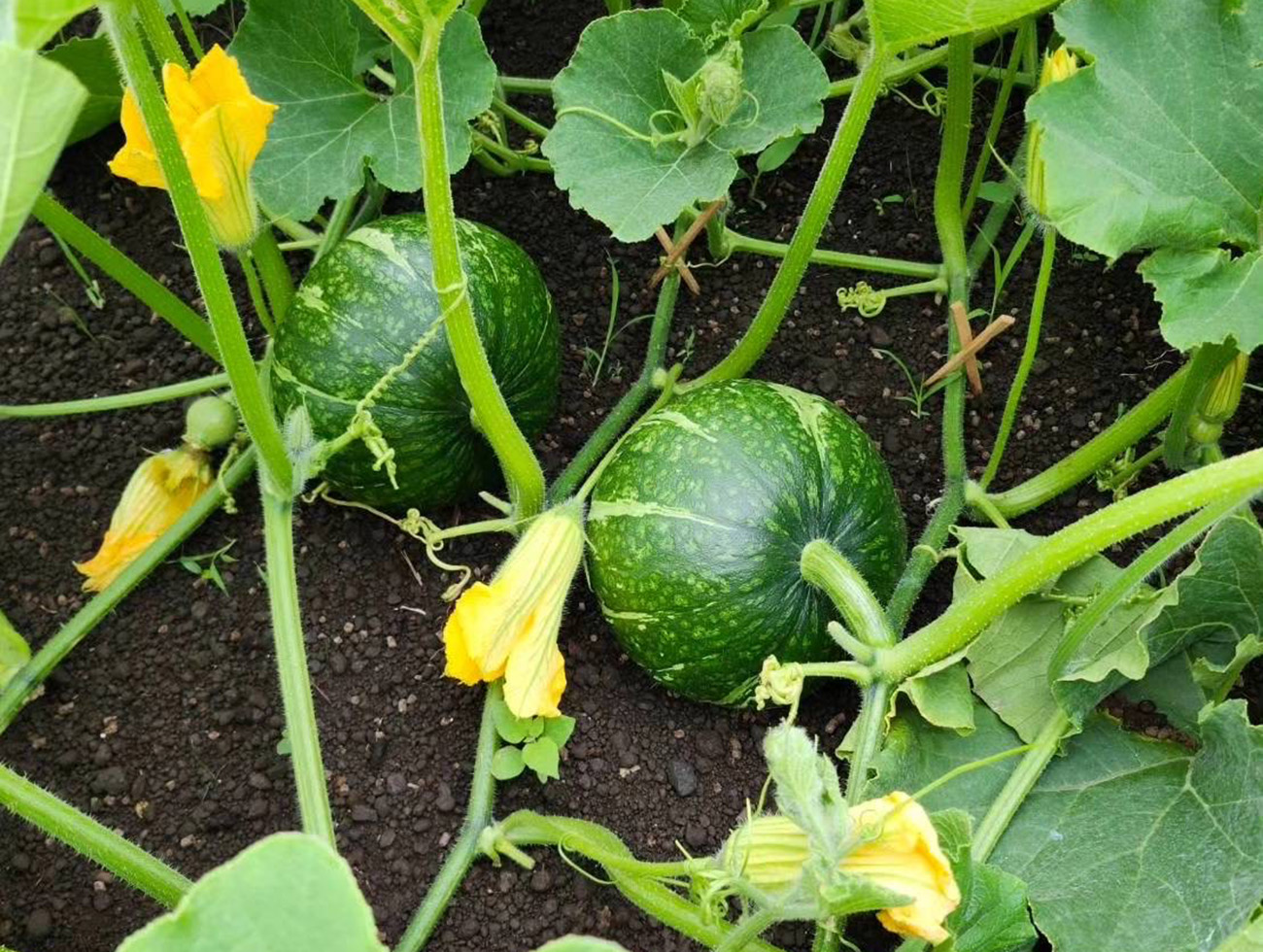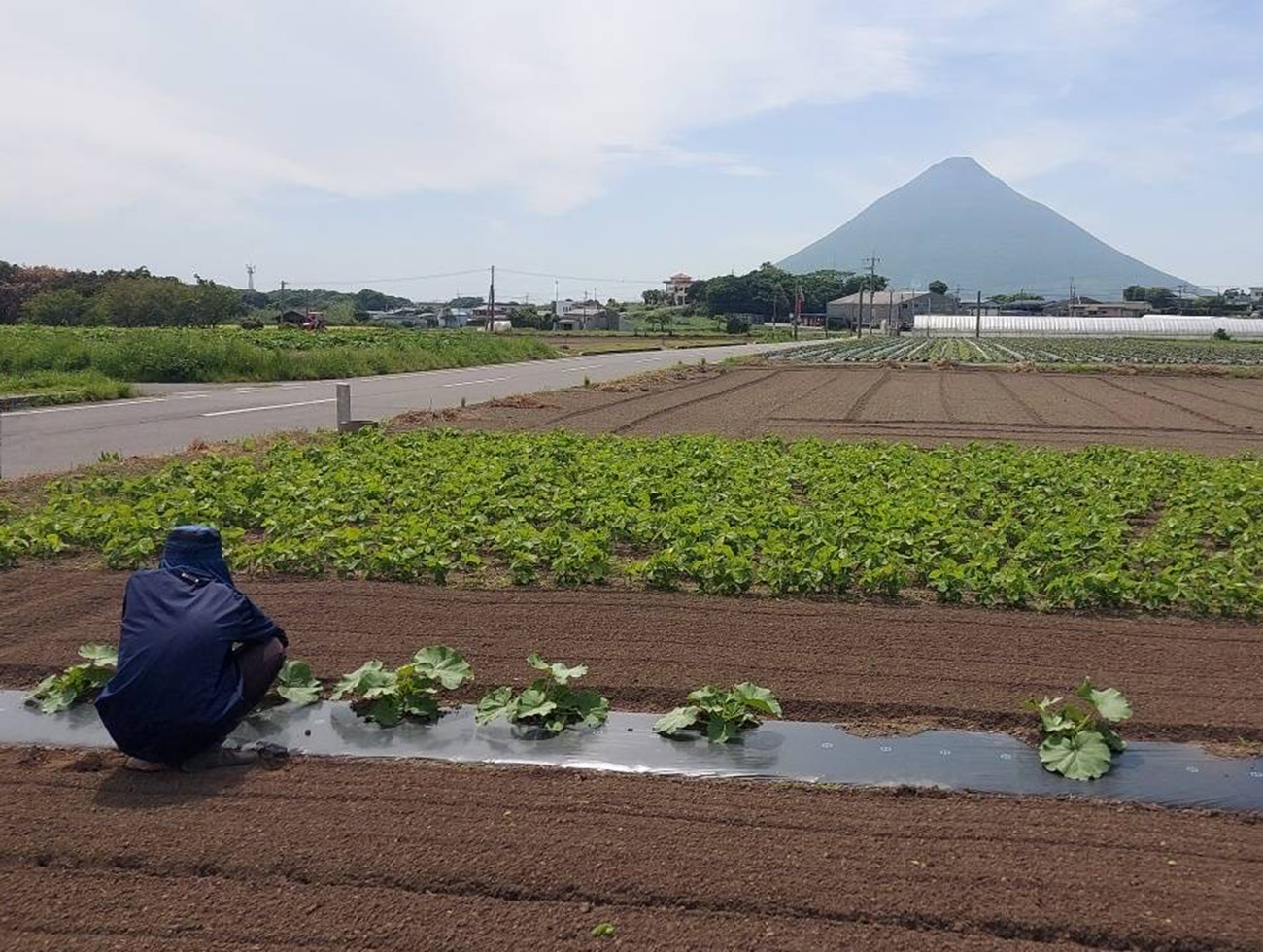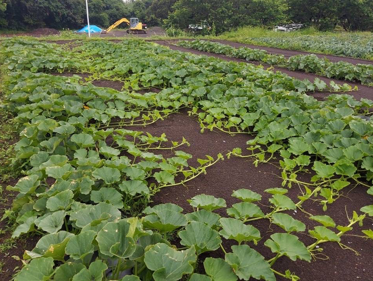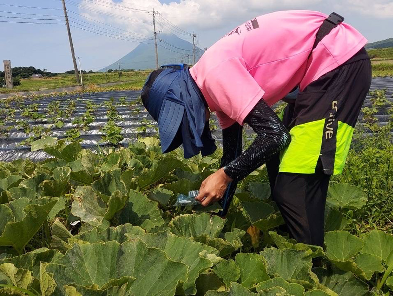 農薬を極力使用せず、環境や人にやさしい栽培方法を実践しています。畑は、開聞岳噴火による火山灰性礫質(れきしつ)土壌に覆われ、排水性に優れていることから、かぼちゃの栽培に最適です。