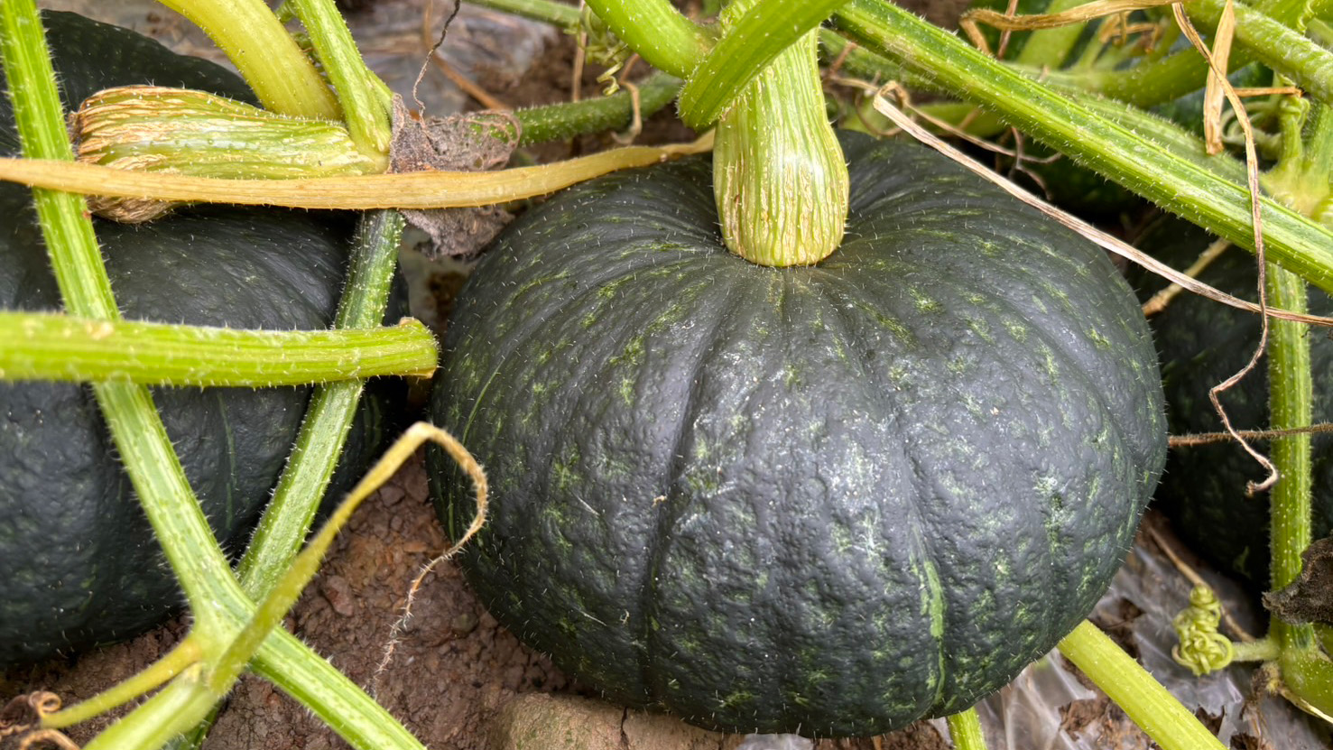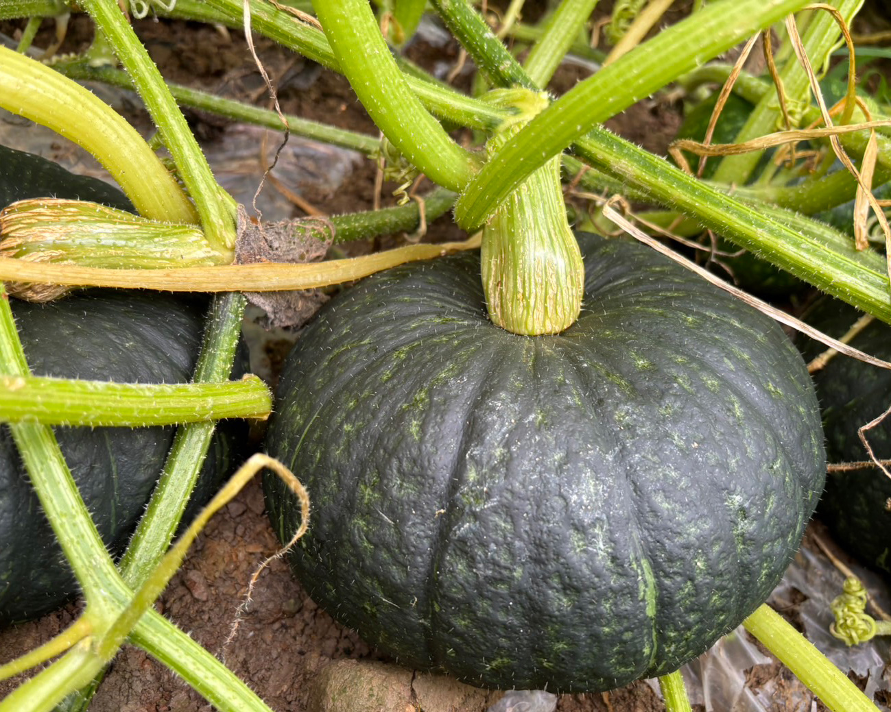かぼちゃは、収穫時期により大きく食味と貯蔵性が変わります。実がなってから55日~60日ほど置き、収穫時期は毎日畑の状況を確認しながら収穫時期を決めています。収穫後は、さらに食味を良くするためにキュアリングという乾燥貯蔵を行います。