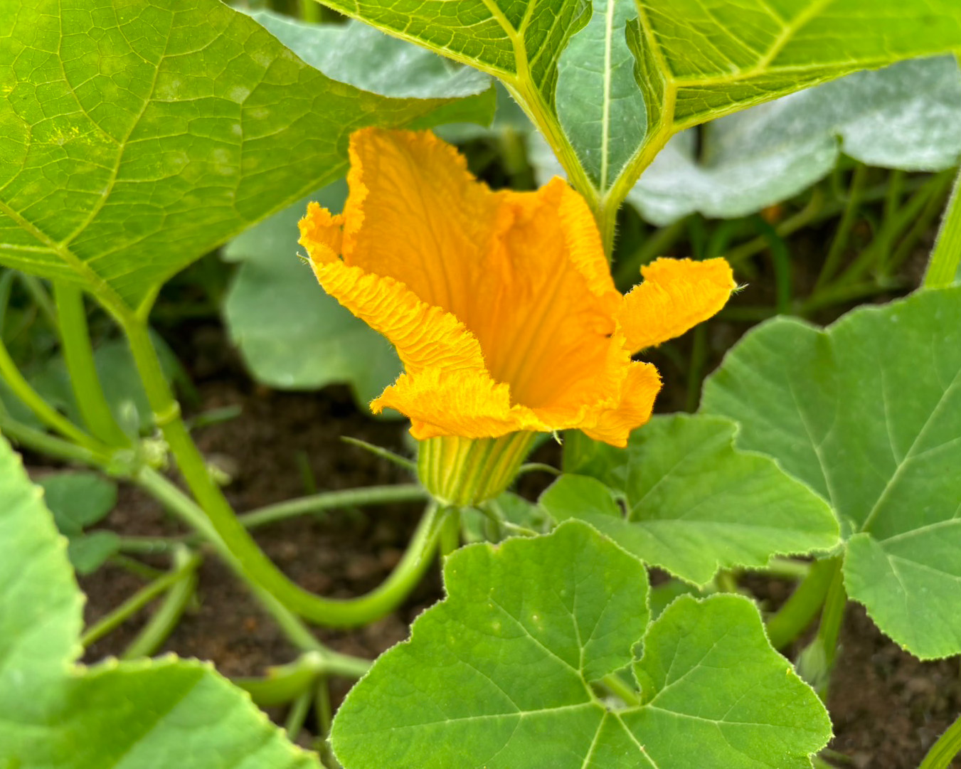 美味しいかぼちゃを作るためには、土づくりが重要です。生石灰を含む有機質肥料を使用し、土壌微生物の働きを活発化させながら、健康な根が育つ土づくりをしています。有機質肥料に含まれている生石灰には、雑草抑制の効果があると言われています。