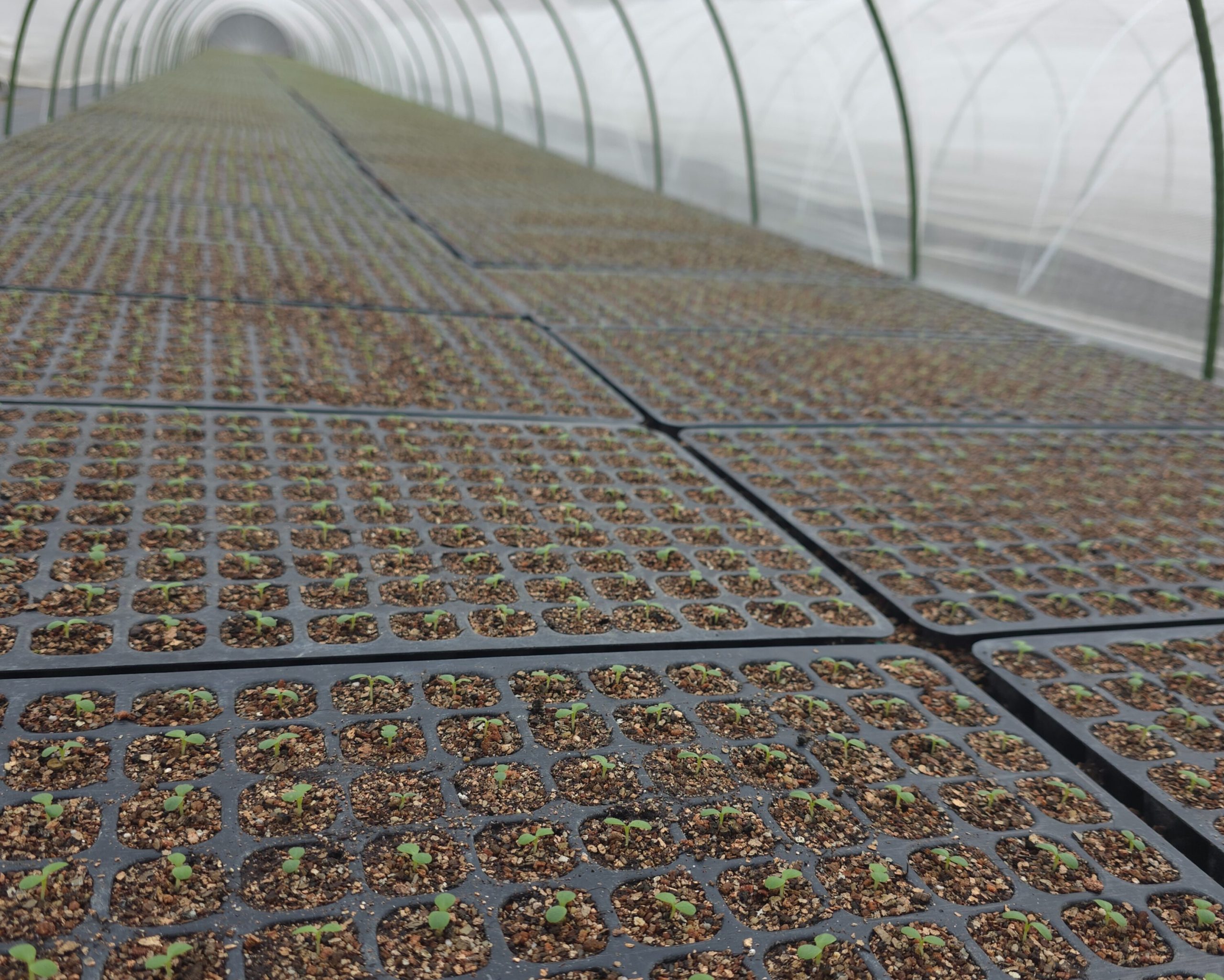 厳選した種子をまき、苗づくりを行います。温度や湿度を細かく管理しながら、健康で丈夫な苗を育てます。レタスは苗づくりがとても大切で、元気な苗を育てることが、おいしいレタスづくりの第一歩です。