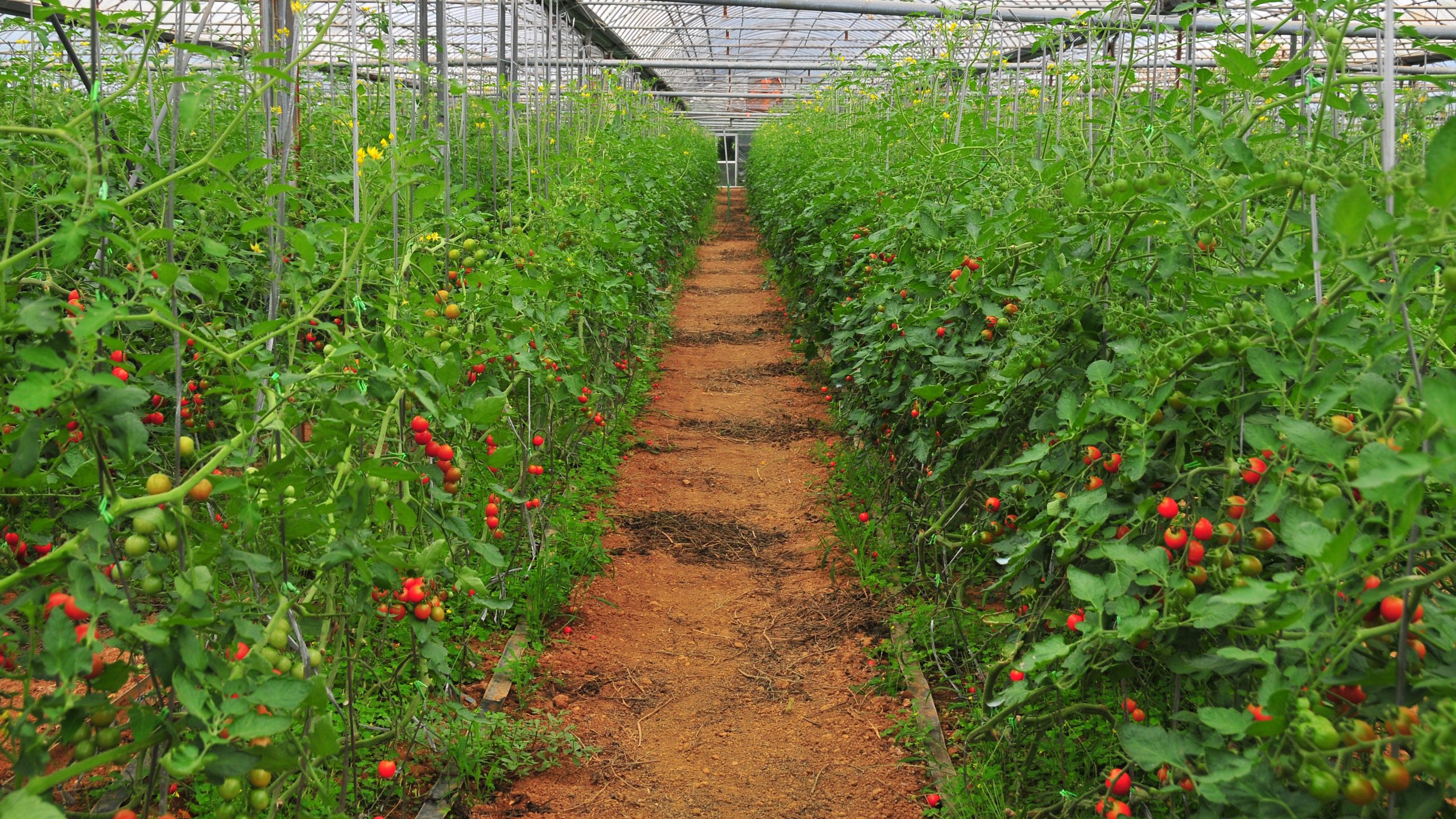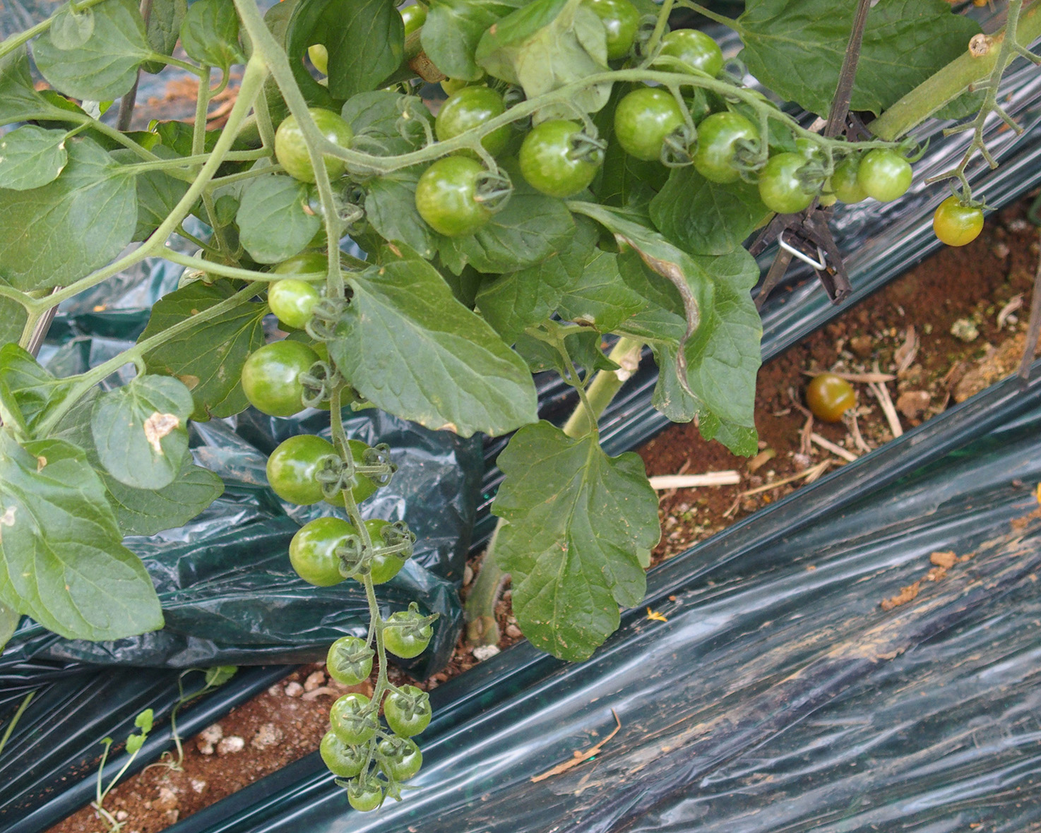 マルチシートとよばれるビニールを引くことにより、土壌の水分や湿度を管理しやすくなります。また、自動潅水システムを使用し、水分量を管理することで、果実にストレスをかかり、美味しいトマトに育ちます。