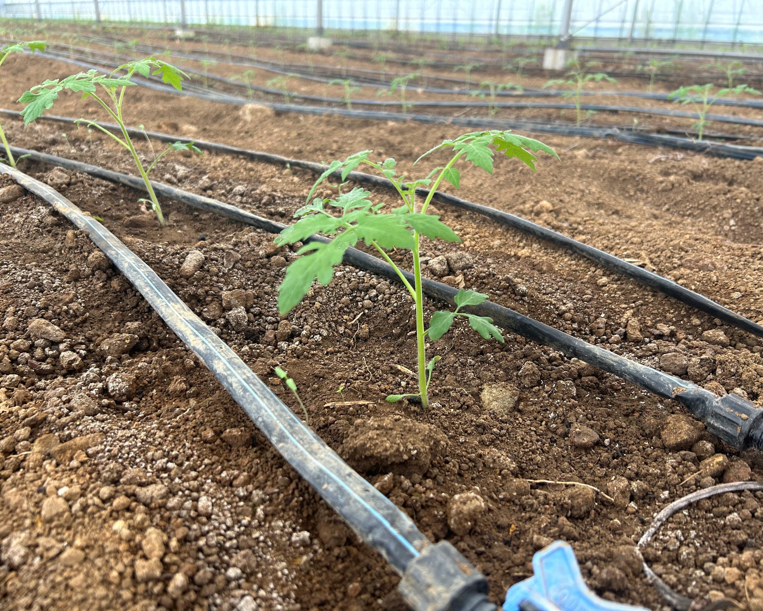 有機質肥料をたっぷりと使用して土づくりをした後、根張りが強く健康に育った苗を定植していきます。品種は、実割れがしにくく、甘みと酸味のバランスの良い「小鈴」を栽培しています。