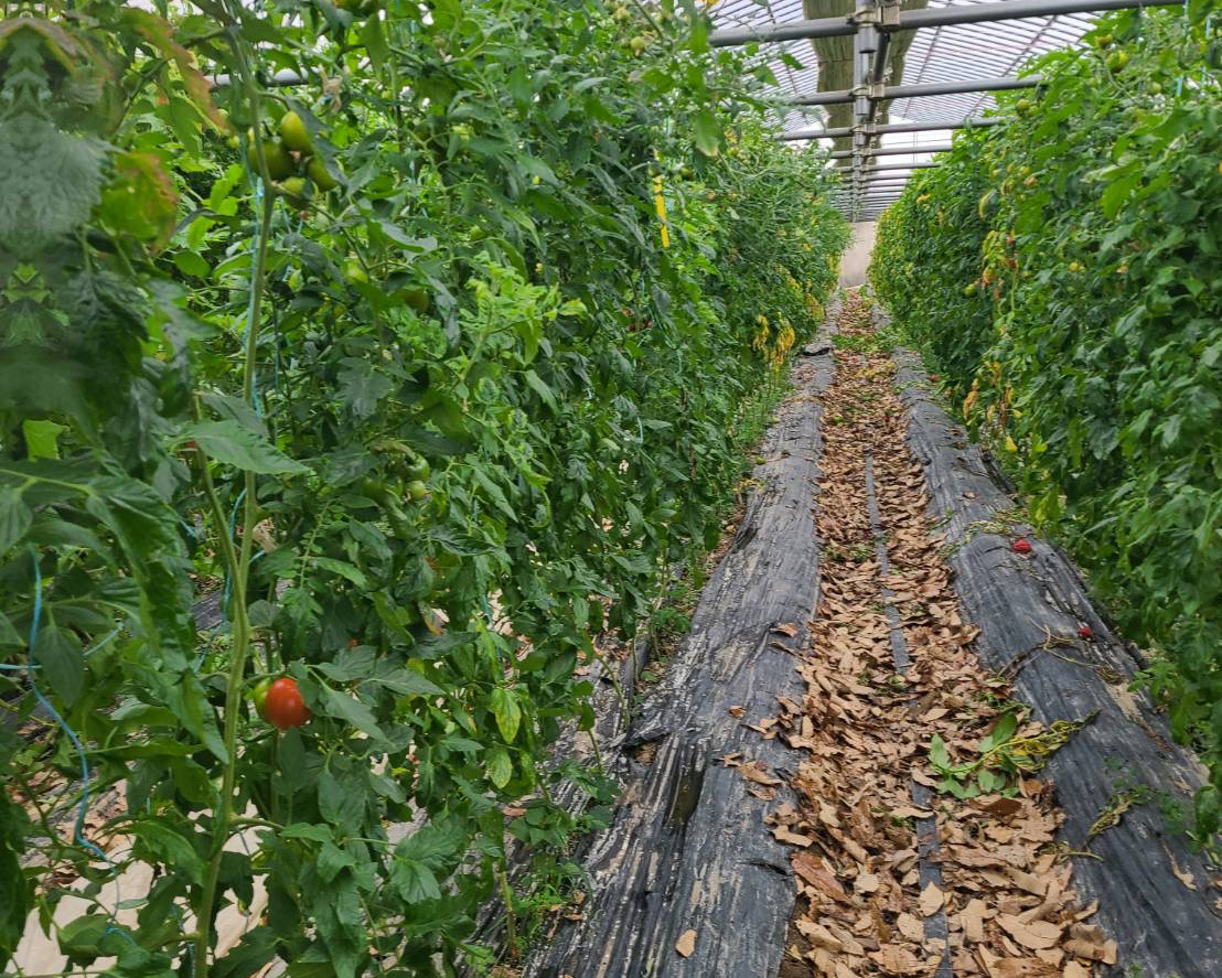 亀田農園では、化学合成肥料には頼らない環境や人にやさしい栽培方法を実践しています。落ち葉などの有機質資材を活用して、土壌の力を引き出しながら、トマトを育てています。自然と調和した農業を大切に環境にやさしく、未来へつながる農業を目指して栽培に取り組んでいます。