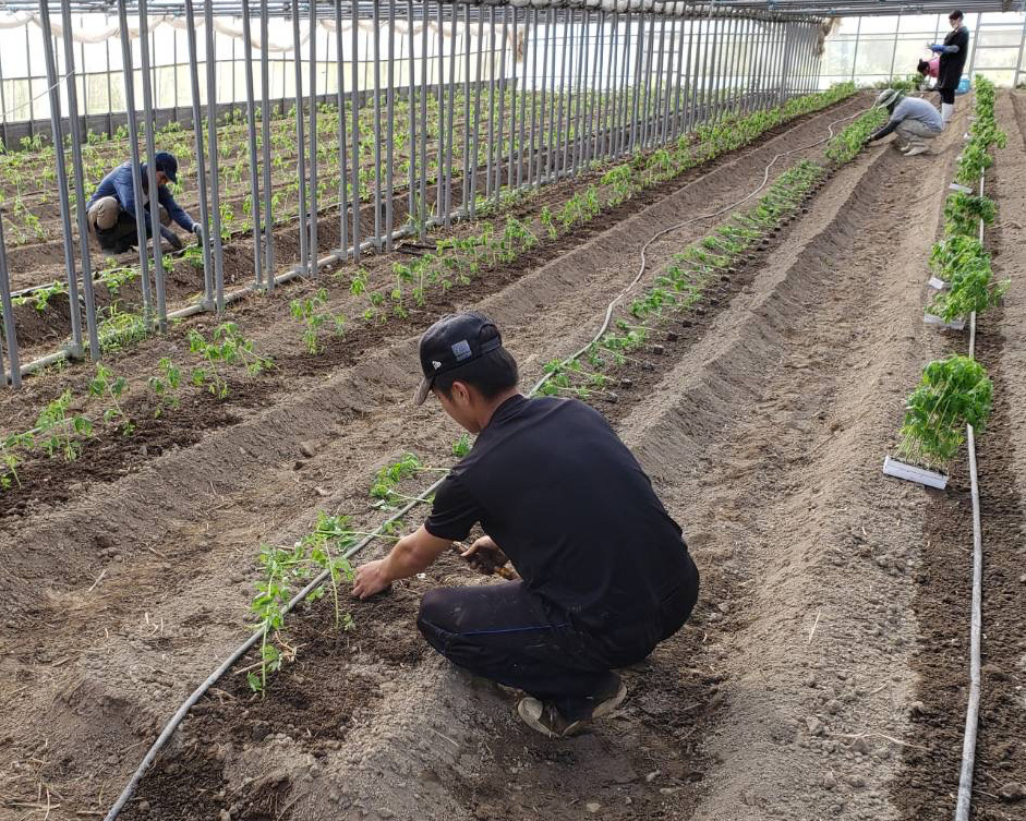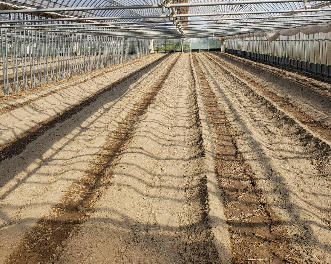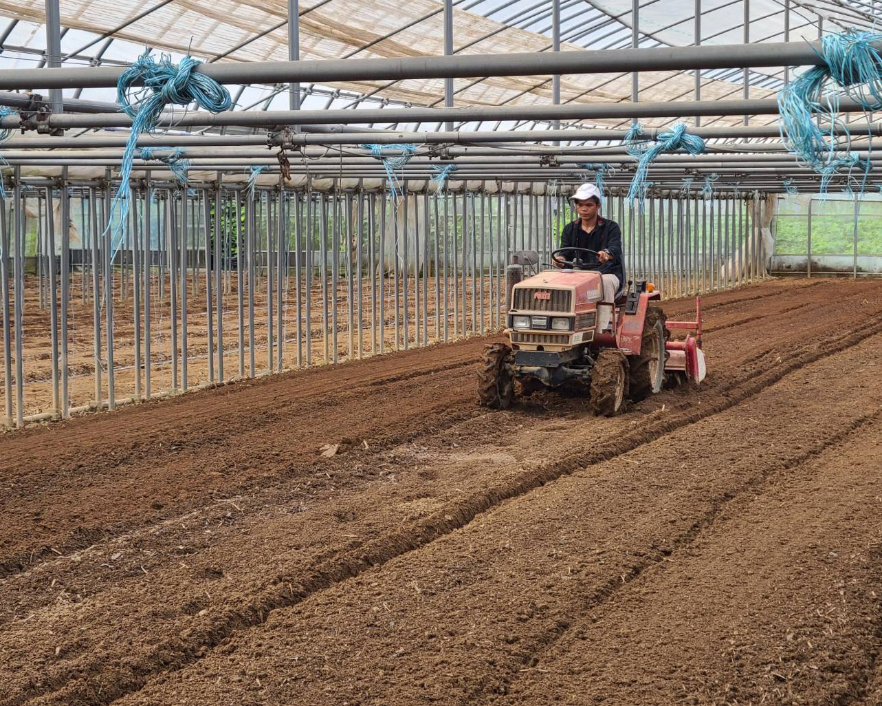土づくりでは、数種類の菌が入った肥料と堆肥を入れ、複数回にかけて畑を耕し、たっぷりと潅水を行って地力を上げていきます。また、太陽光を利用した土壌の熱消毒を行うことで、水はけの良いふかふかの土になります。