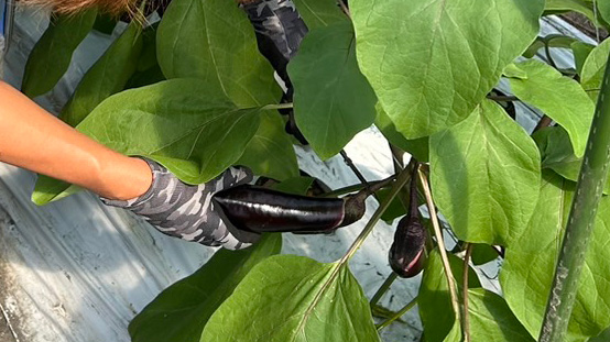長なすは、長期間に渡って収穫が続きます。9月に定植をした後、10月から翌年7月上旬まで収穫が行われます。長なすを収穫する際、茎が長いと収穫した長なす同士が傷付くため、長すぎないように切ります。