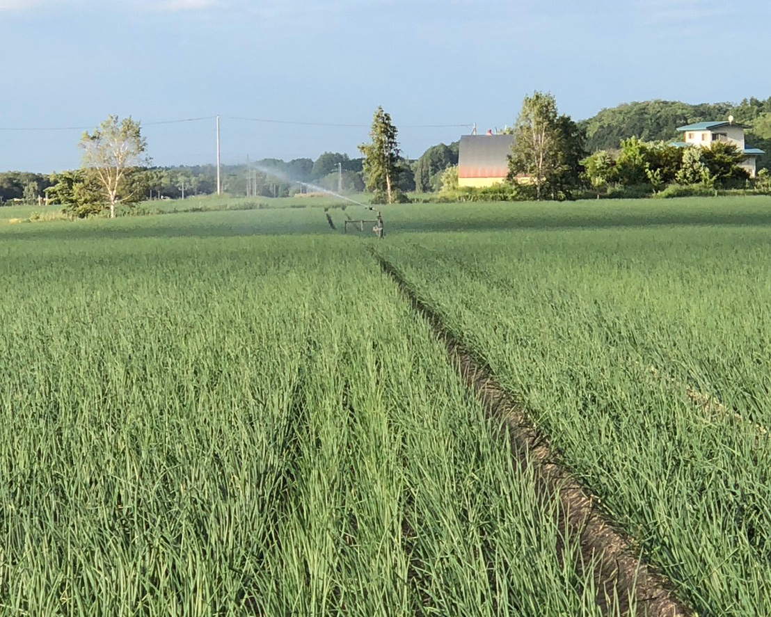 玉ねぎの栽培では、水分管理が重要です。水分が不足すると葉がしおれてしまい、成長が阻害されることで収穫量が減少してしまいます。雨が降らず、干ばつの時には散水機を使用し、12時間以上かけて散水する場合もあります。